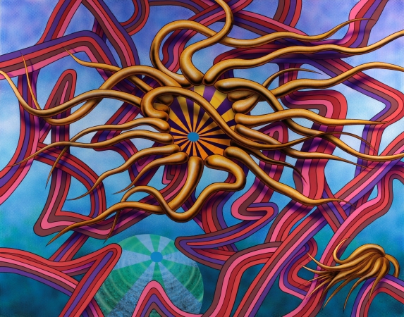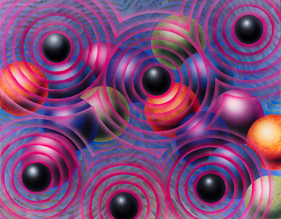 Sphericulum Vibrosonicus, acrylic on canvas, 50" x 64" (157 x 163 cm approx.), 2016