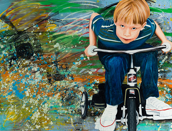 Trike Boy, oil on canvas, 38" x 50" (97 x 127 cm approx.), 2002